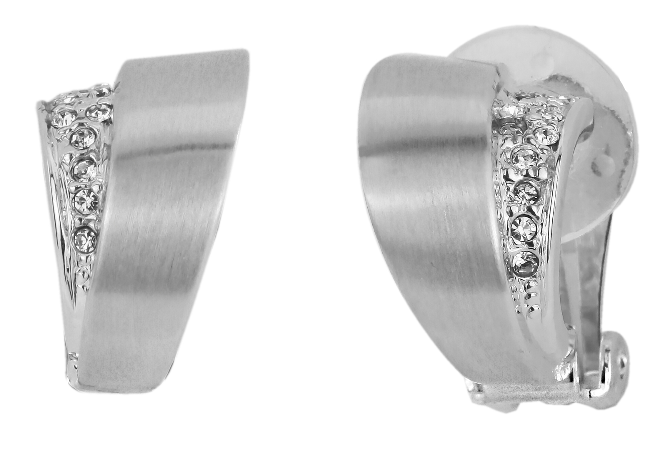 Traveller Clip-on Earrings - Silver Coloured - Crystals - Matted - Platinum Plated - 14x8 mm - 157473
