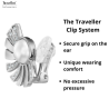 These charismatic clip-on earrings from Traveller have a fan shape. The first, second, fifth, sixth and ninth segments are studded with Preciosa crystals, while the remaining segments have a shiny silver colour. In the centre of the fan is a high-quality imitation pearl, sourced from Mallorca – an island known for its pearls. The earrings are fully platinum plated (core material metal) and weigh only 3.5 grams each. Thanks to Traveller's unique fastening system, our clip-on earrings are very comfortable, light and safe to wear.