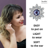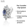 These gorgeous earrings from Traveller are real eye-catchers. A Mesmera coloured crystal forms the heart of a flower, in artificial light it turns green while in natural light the crystal takes on a purple colour. The petals of these patinum plated clip-on earrings consist alternately of one 1 or two shiny Preciosa crystals. Each earring weighs only 3 grams and thanks to Traveller's unique fastening system, they are very light, comfortable and safe to wear.