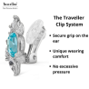 Radiate with these stunning earrings from Traveller, a beautiful design to make you feel completely happy. The clip-on earrings are shaped like half a flower with petals tapering from smaller to larger. A beautiful light blue Preciosa crystal forms the heart of this flower and the petals consist of transparent Preciosa crystals. The silver parts of the clip-on earrings are platinum plated. The clip-on earrings measure 20 by 12 millimetres and weigh 2.8 grams each. Thanks to Traveller's unique fastening system, the clip-on earrings are very comfortable, light and safe to wear.