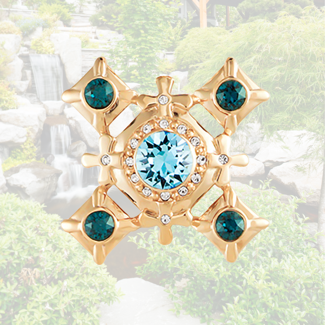 Grossé's colourful Dynasty line is specially designed to bring positivity and energy to everyone. These clip-on earrings have an artistic design with several sparkling crystals from Preciosa. In total, the 22 carat gold plated earrings, measure 20 x 20 millimetres. Thanks to Grossé's luxurious fastening system, these earrings are very comfortable to wear.