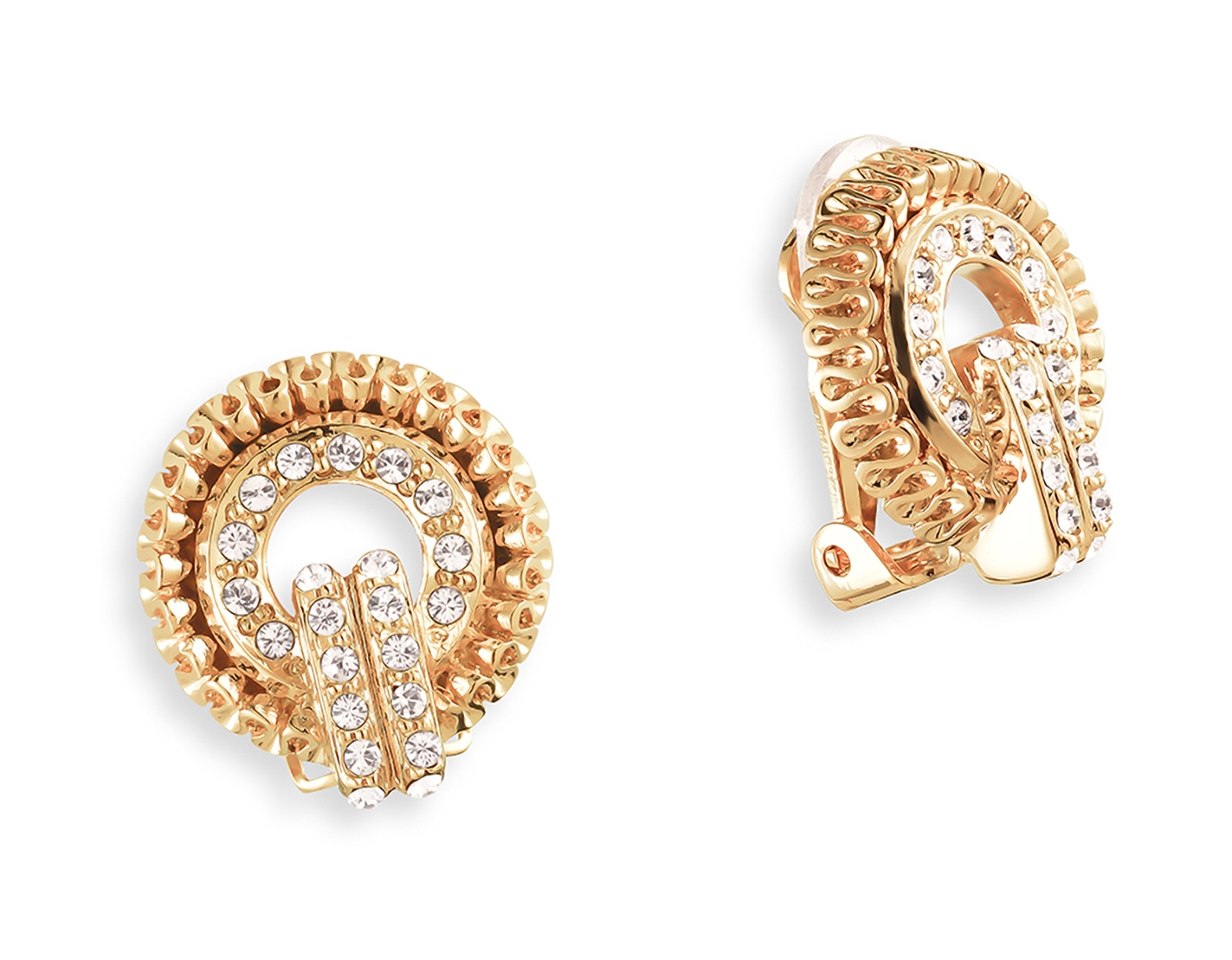 Grossé Clip-on Earrings - Tourbillon - Gold Coloured - Crystals - 20x18 mm - Gold Plated