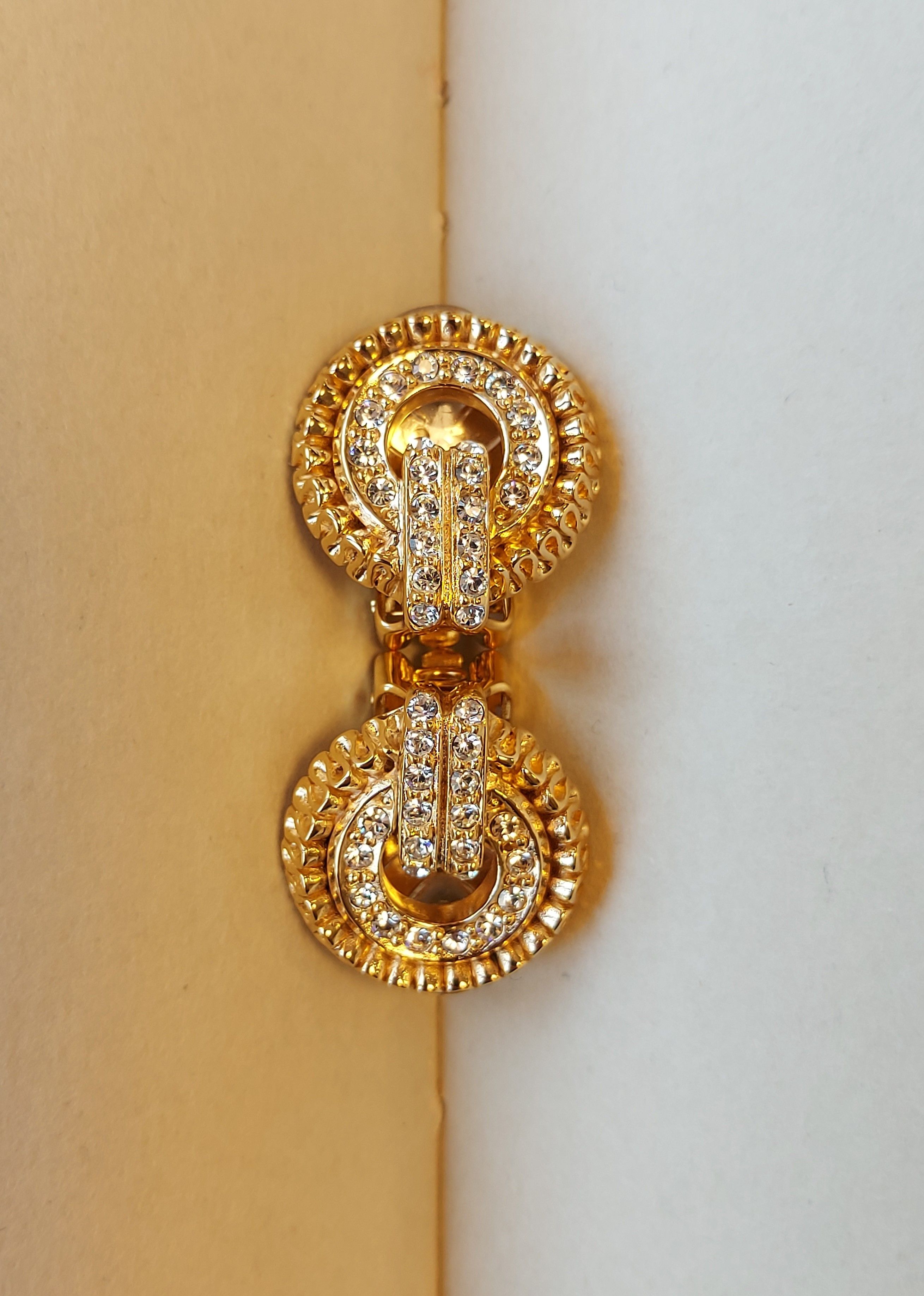 These classic earrings by Grossé are a reproduction of Grossé's iconic line from 1953. A bold design is combined with sparkling crystals from Preciosa in these clip-on earrings, providing a unique touch. The clip-on earrings are gold plated 22 carat gold and measure 20 x 18 millimetres. Thanks to Grossé's luxurious fastening system, these earrings are very comfortable to wear.