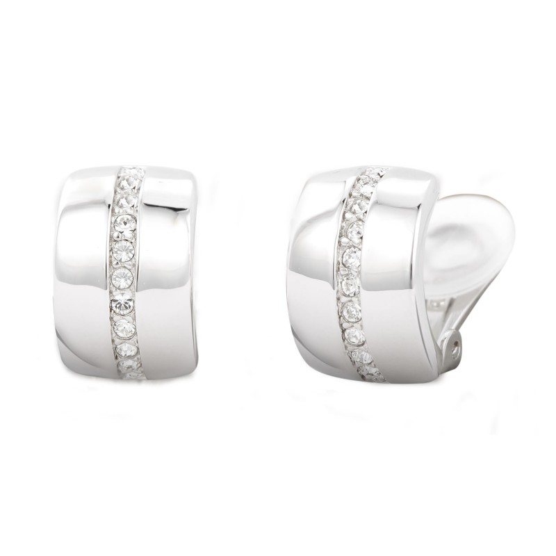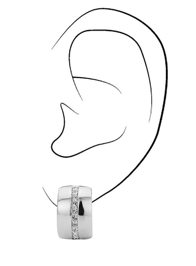 These clip-on earrings from Traveller have a sleek, chic design that will make you shine. The platinum plated clip-on earrings (core metal) feature a row of sparkling crystals from Preciosa in the centre. The clips measure 16 x 10 millimetres and weigh 4 grams each. Thanks to Traveller's unique fastening system, these ear clips are very comfortable, light and safe to wear.