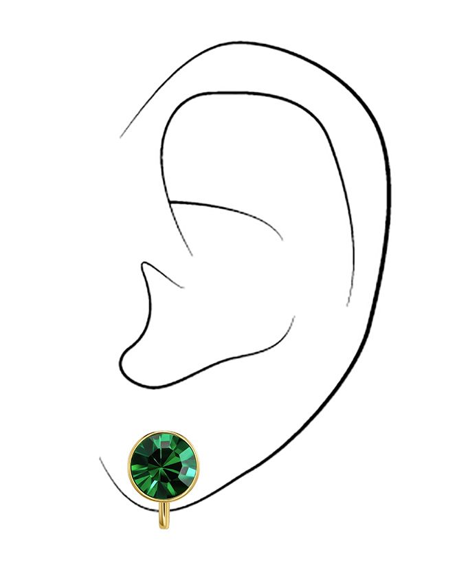 A sparkling green crystal makes these Traveller clip-on earrings a stunning piece of jewellery. The crystals in these clip-on earrings have a diameter of 10 millimetres and are from Preciosa. Because the earrings are 22 carat gold plated, they retain their beautiful golden colour for a long time. Thanks to Traveller's unique fastening system, our clip-on earrings are very comfortable, light and safe to wear.