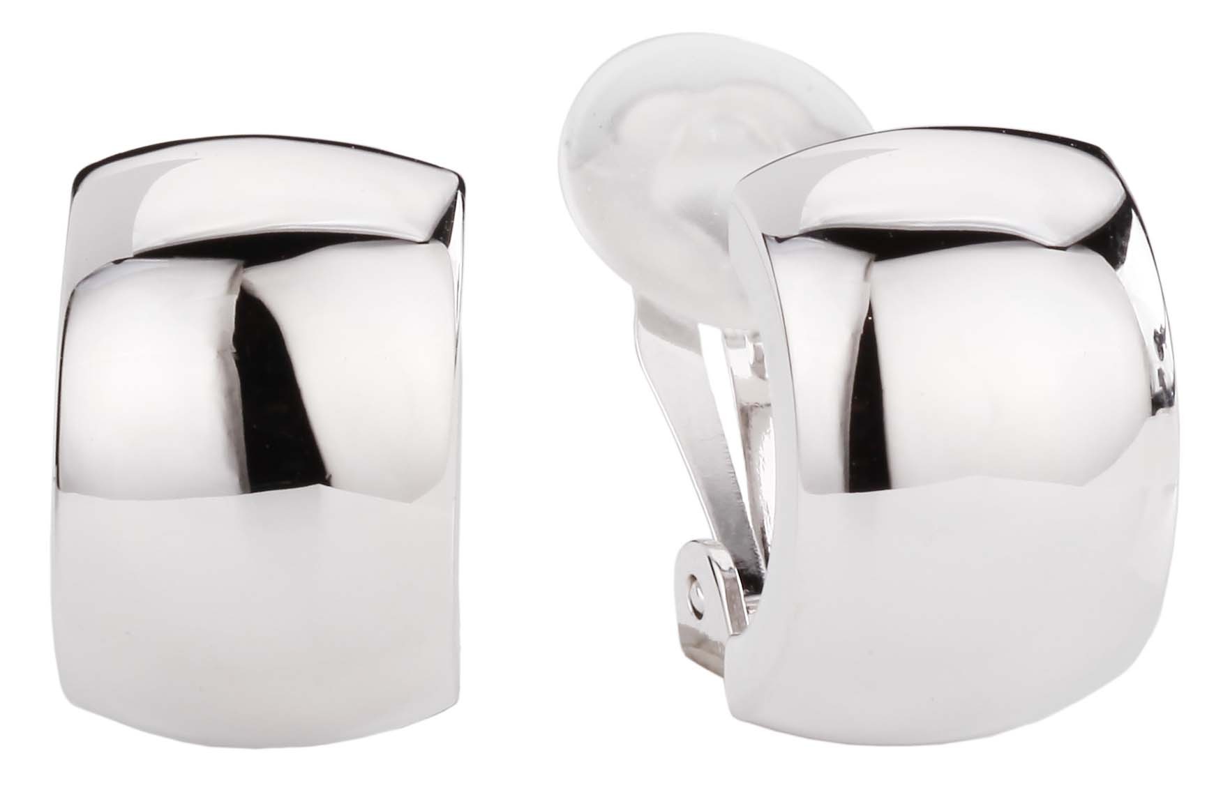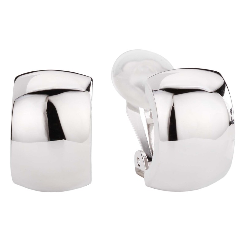 Traveller Clip-n Earrings - Silver Coloured - Shiny - Half Hoops - Platinum Plated - 18 mm