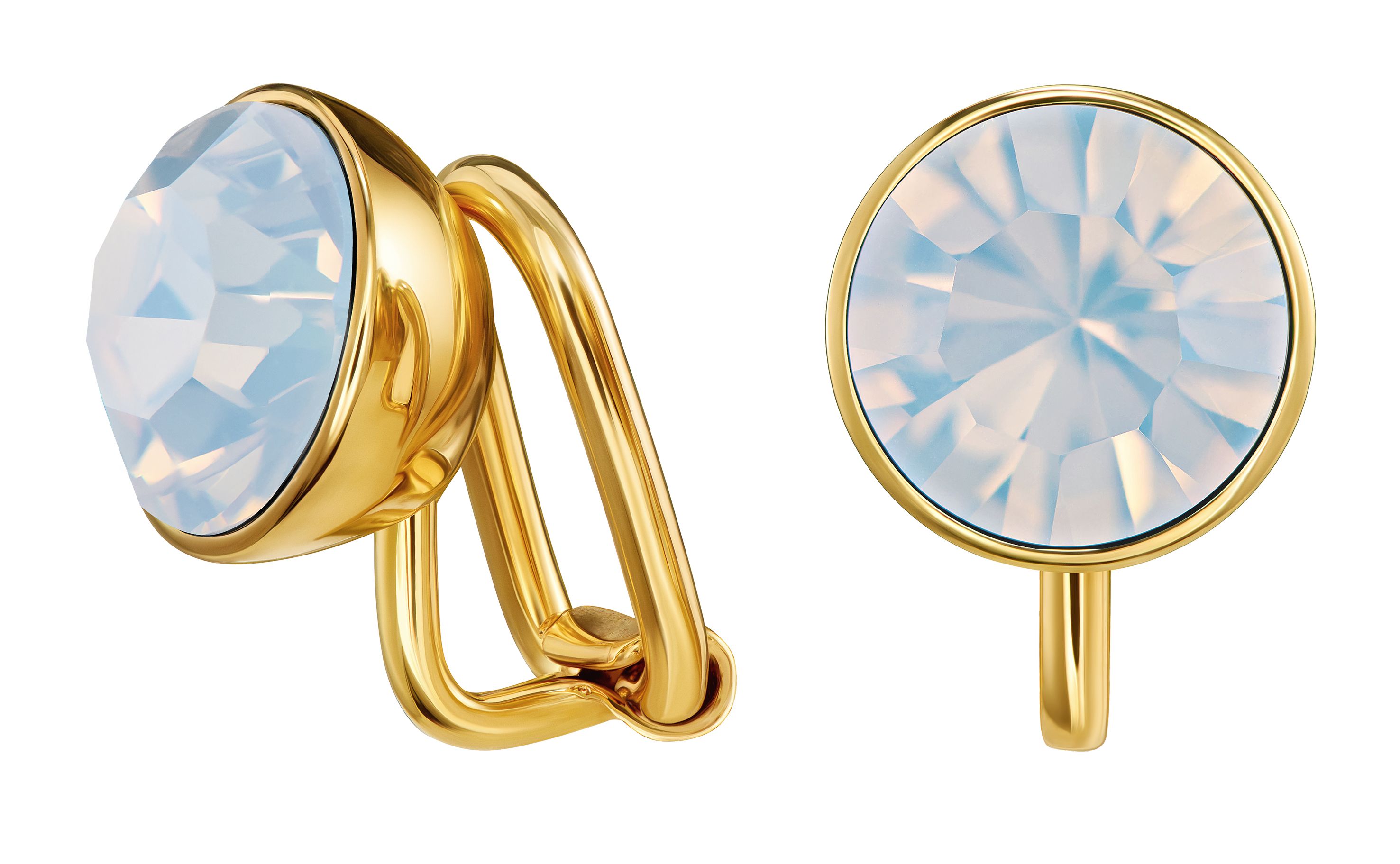 Traveller Clip-on Earrings - 22ct Gold Plated - Crystal - White Opal - Circular - Ø 9mm