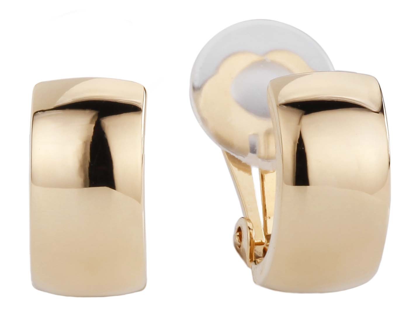 These shiny clip-on earrings from Traveller in the shape of half hoop earrings are stylish and timeless. The 22-carat gold plated clip-on earrings (core material metal) measure 16 x 8 millimetres and weigh just 3 grams each. Thanks to Traveller's unique fastening system, these ear clips are very comfortable, light and safe to wear.