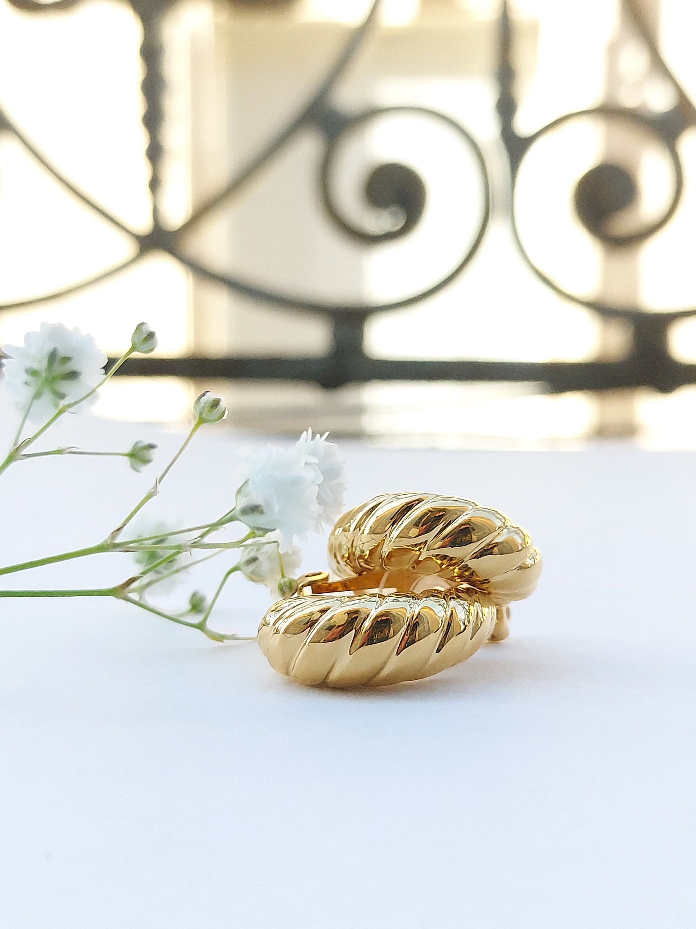 A pair of chic, timeless clip-on earrings from Traveller. The 22 carat gold plated ear clips (core material: metal) stand for class and style. The earrings measure 20 x 7 millimeters and weigh 4.5 grams each. Thanks to Traveller's unique closure system, these clip-on earrings are very comfortable, light and safe to wear.