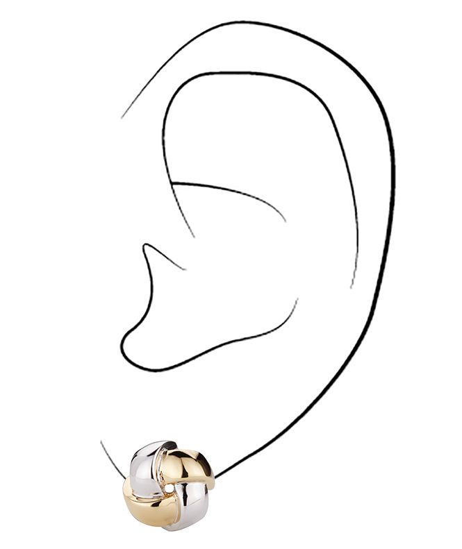 These unique, artful clip-on earrings from Traveller create a stylish look. The clip-on earrings consist of four strips braided together to form a knot. The shiny bicolour earrings are partly platinum plated and partly 22 carat gold plated (core material: metal). The earrings have a diameter of about 15 millimetres and weigh each 4 grams. Thanks to Traveller's unique fastening system, the ear clips are very comfortable, light and safe to wear.