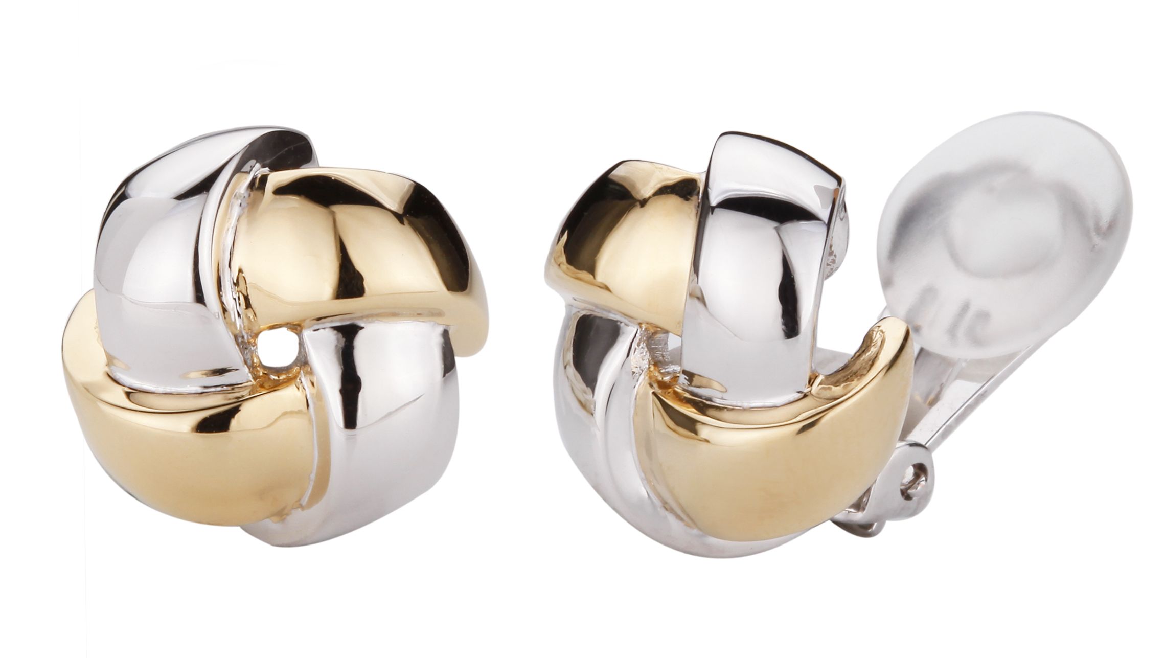 Traveller Clip-on Earrings - Bicolour - Braided / Button - Gold and Platinum Plated - 15 mm