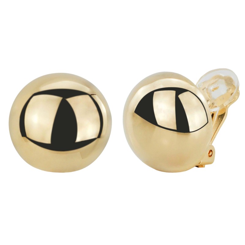 Traveller Clip-on Earrings - Gold coloured - Half Round - Sphere - Gold Plated - 19 mm