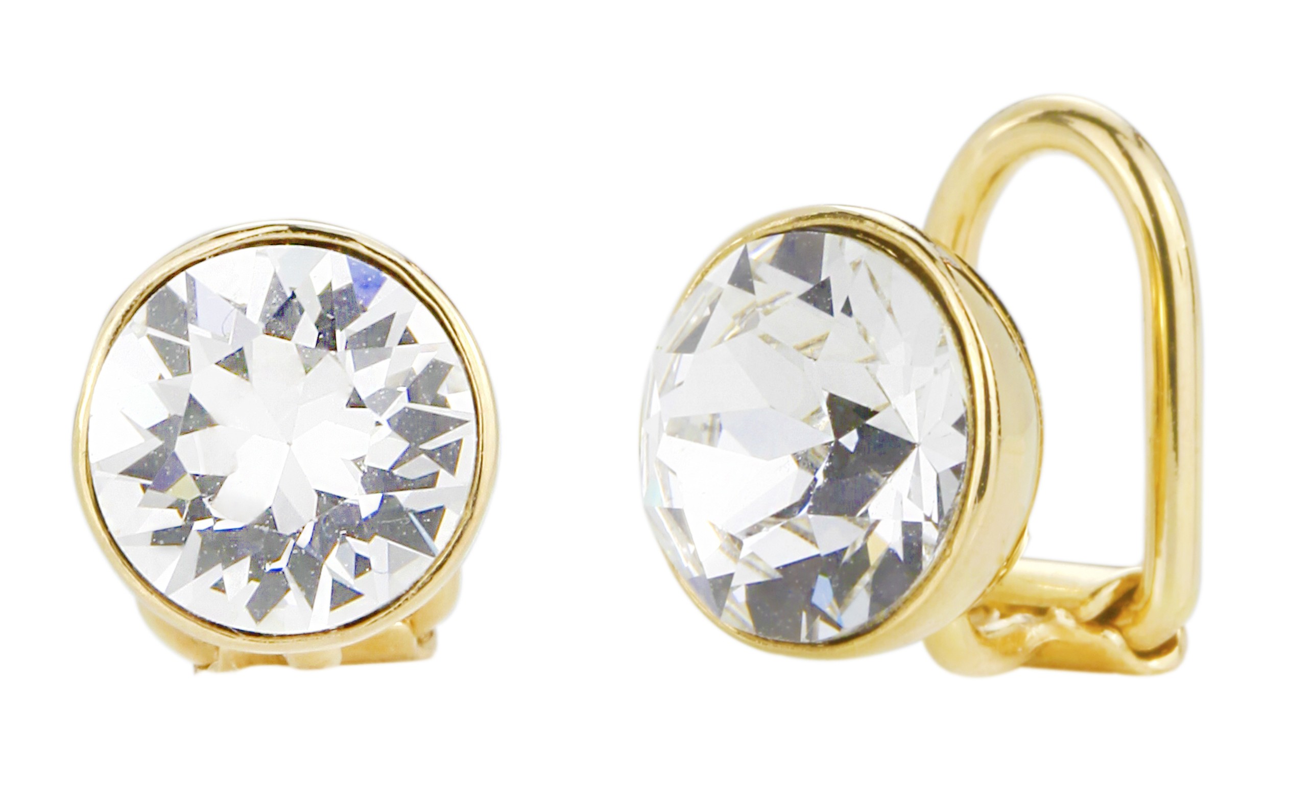 Traveller Clip-on Earrings - Gold coloured - Preciosa Crystal - Gold Plated - 10 mm