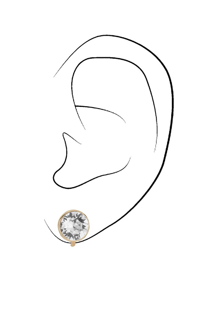 A pair of radiant clip-on earrings from Traveller. These 22-carat gold plated clip-on earrings consist of a sparkling Preciosa crystal surrounded by a thin, 22 carat gold plated rim. The crystal has a diameter of 9 millimetres. The clip earrings weigh just 2 grams each.