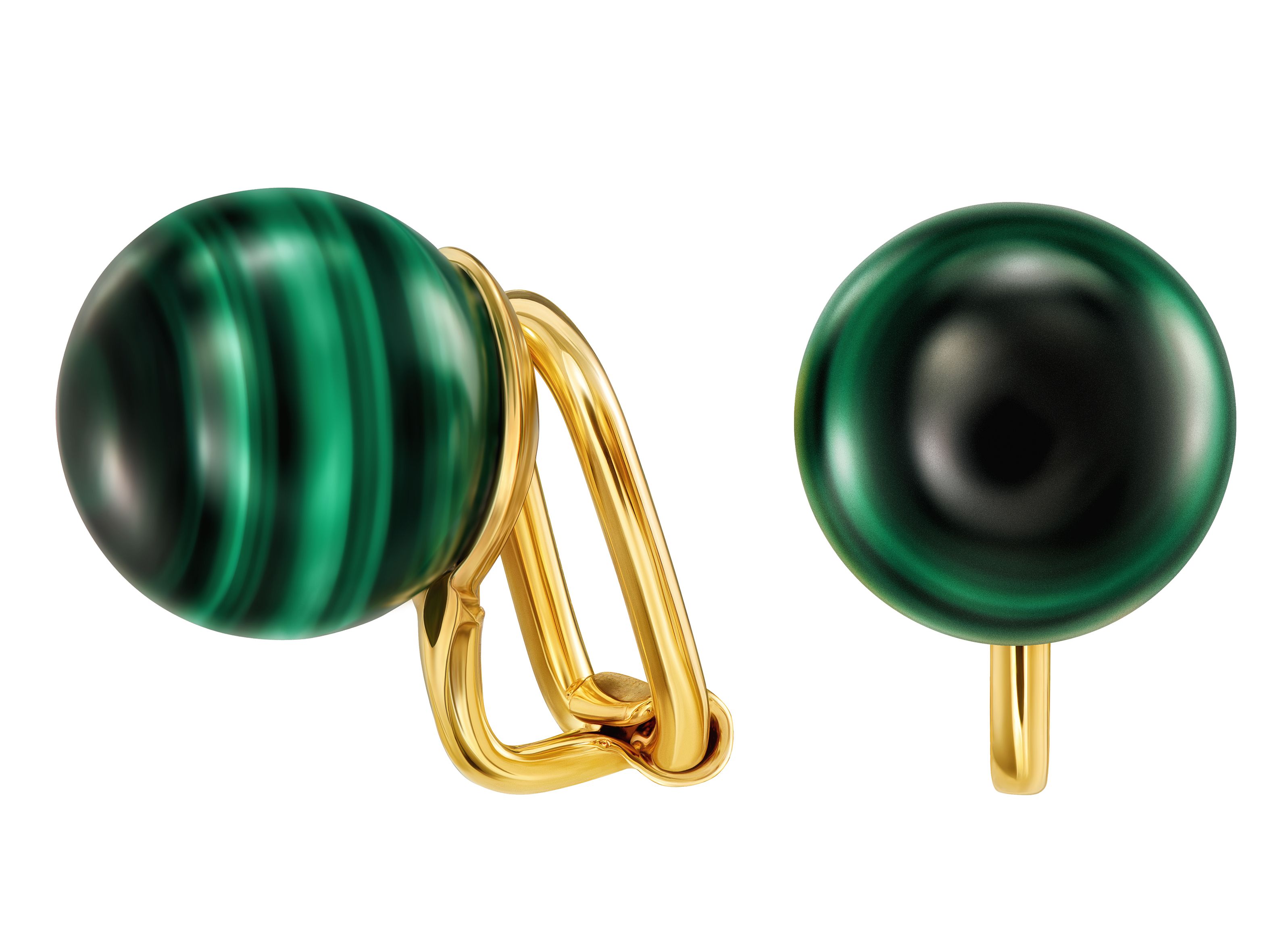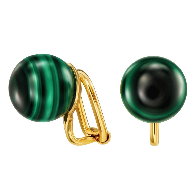 Traveller's classic round earring combines harmony with elegance. These gold plated clip-on earrings contain a genuine beautifully mottled Malachite stone and have a diameter of 10 millimetres. Malachite is a natural product therefore the colour in the photo may differ from the colour earring you receive, each stone is unique and therefore looks slightly different. Thanks to Traveller's unique fastening system, these earrings are very comfortable, light and safe to wear.