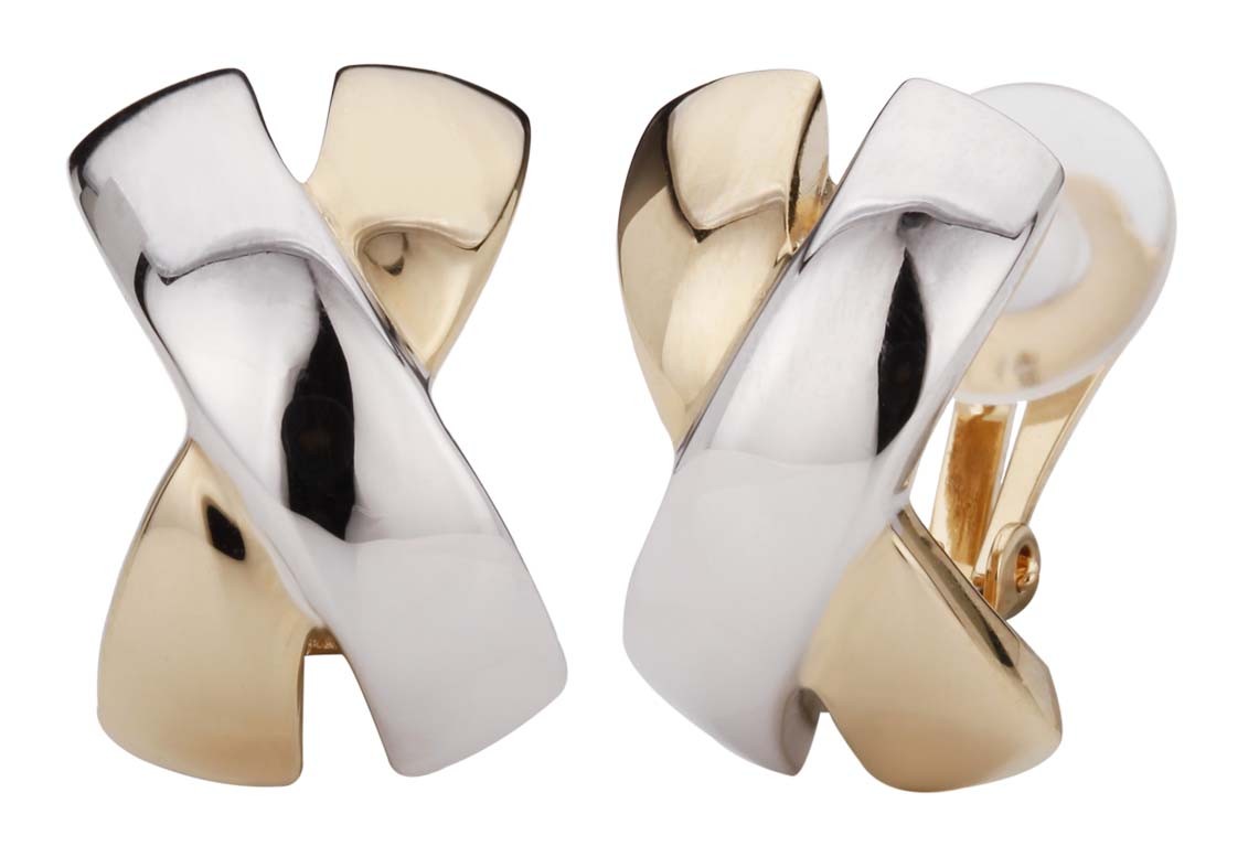 Stylish and timeless, these eye-catching clip-on earrings from Traveller are a must-have. The shiny, bicoloured cross-shaped clips are partly gold plated with 22 carat gold and partly platinum plated (silver coloured). The clip-on earrings measure 22 x 12 millimetres and weigh 5 grams each. Thanks to Traveller's unique fastening system, these clip-on earrings are very comfortable, light and safe to wear.
