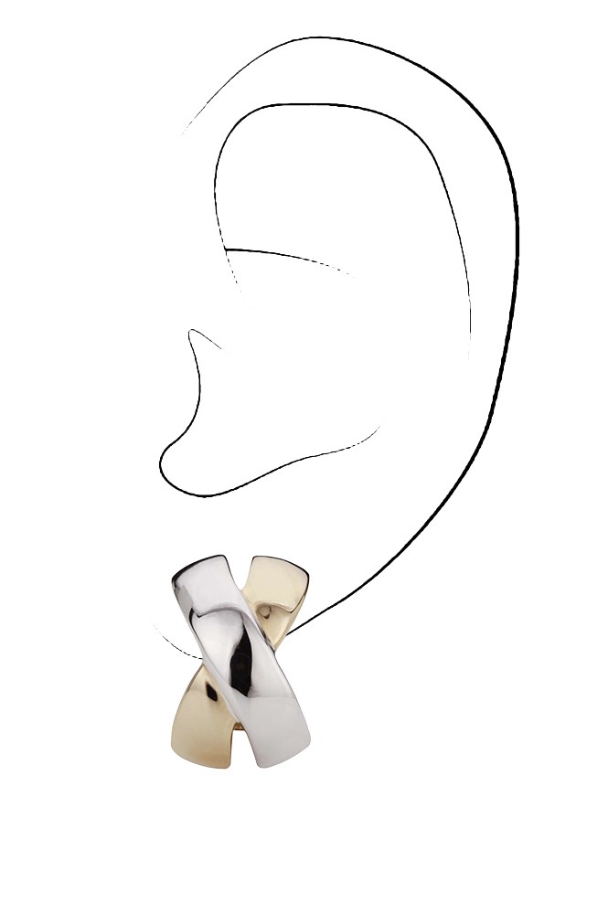 Traveller Clip-on earrings - Platinum & Gold Plated - Bicolor - Cross / X - 22x12 mm
