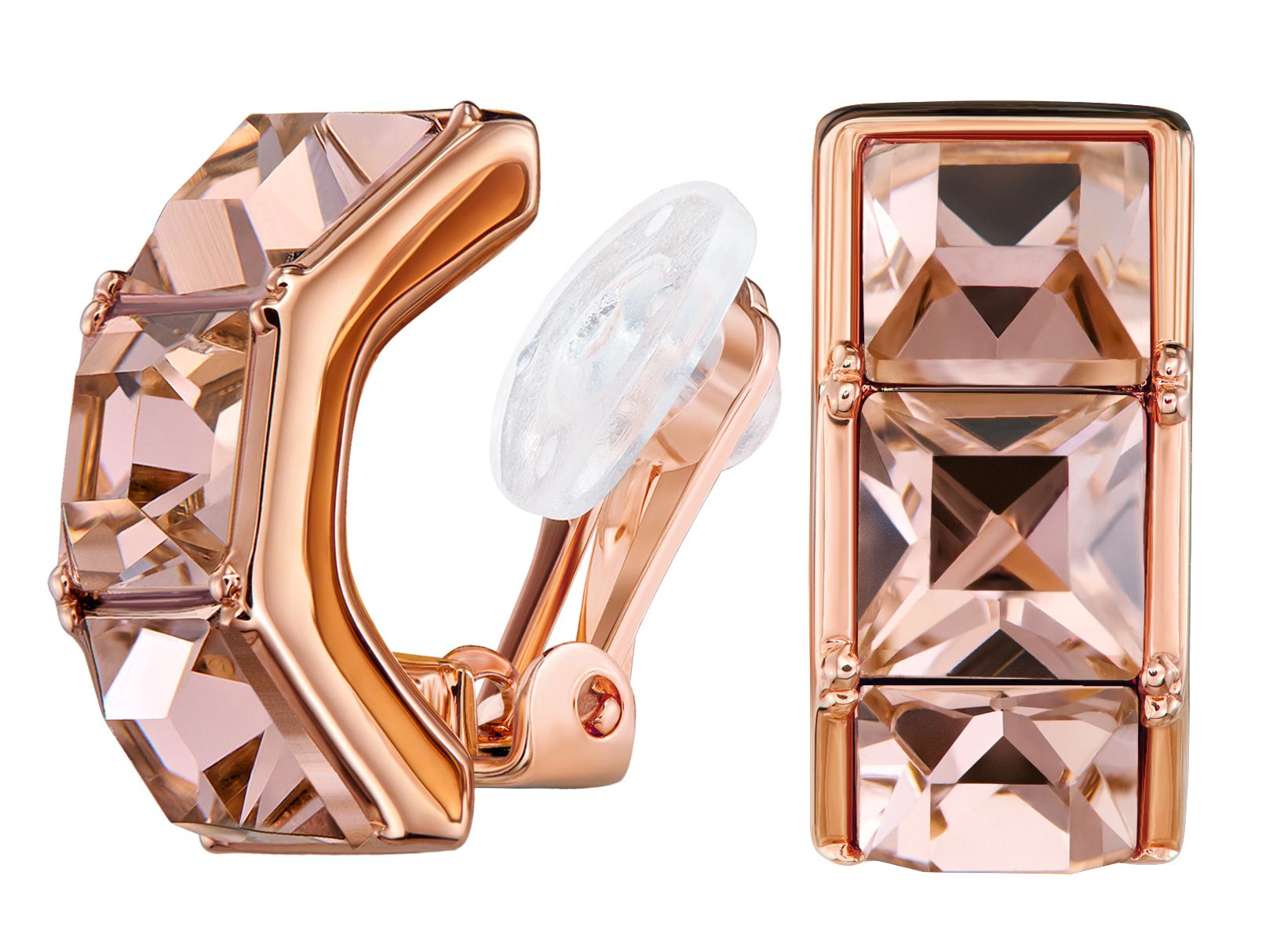 Elegant crystals in a sleek design form these cheerful earrings. These Traveller clip-on earrings feature a row of high-quality rose crystals from Preciosa. The rose gold plated earrings measure 16 x 8 millimetres and weigh 4 grams each. Thanks to Traveller's unique closure system, these clip-on earrings are very comfortable, light and safe to wear.