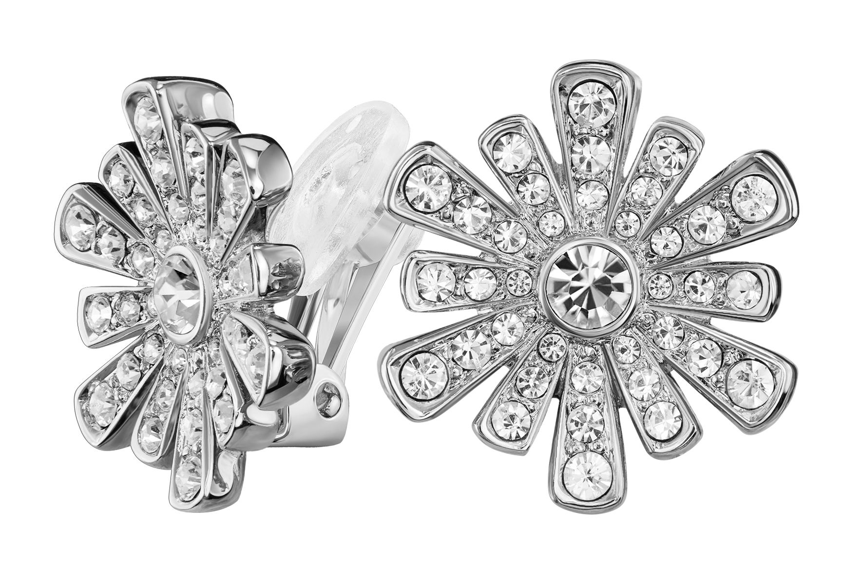 Traveller Clip-on Earrings - Silver Coloured - Crystal - Platinum Plated - Flower-shaped - Ø 15mm