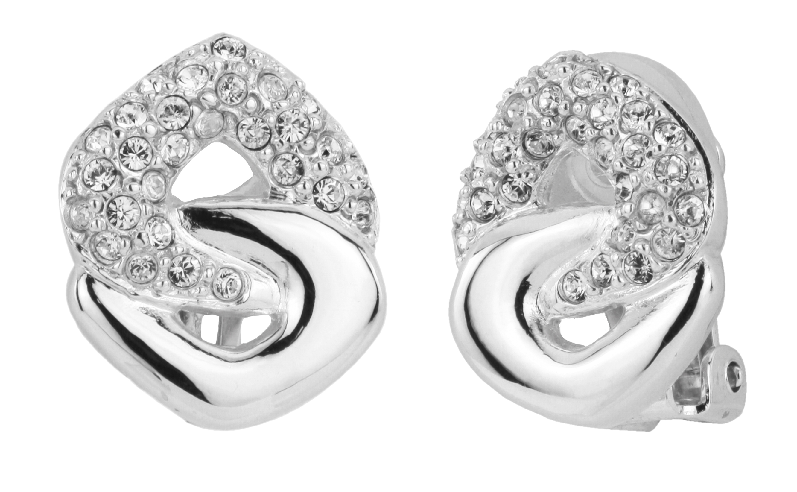 Traveller Clip-on Earrings - Silver Coloured - Crystals - Platinum Plated - 16x13 mm
