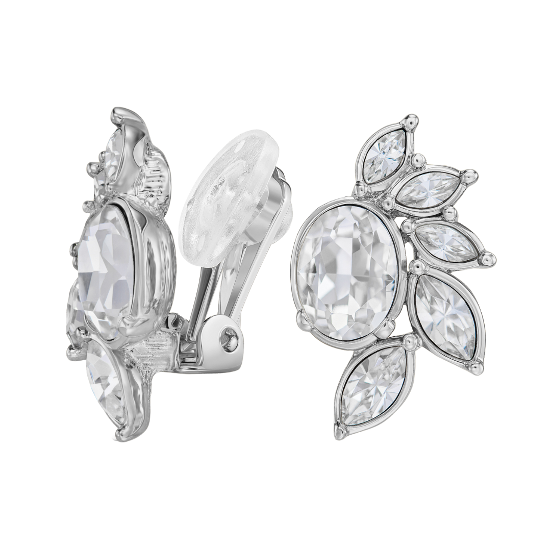 Traveller Clip-on Earrings - Silver Coloured - Crystals - Platinum Plated - Flower - 20x12 mm