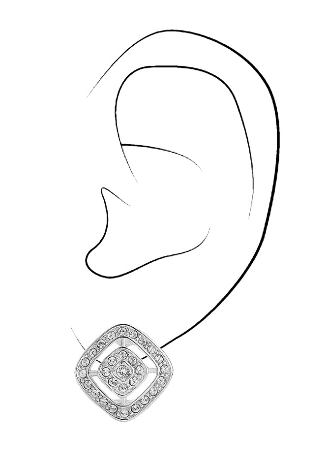 Traveller Clip-on Earrings - Silver Coloured - Crystals - Square - Ø 17mm - Platinum Plated
