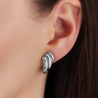 These clip-on earrings from Traveller are of a simple yet striking design! The clip-on earrings consist of 3 shiny silver bands, the earrings are platinum plated. Each clip-on earring weigh 3.5 grams, they are 17 millimetres long and 10 millimetres wide. Thanks to Traveller's unique closure system, the clip-on earrings are very comfortable, light and safe to wear.