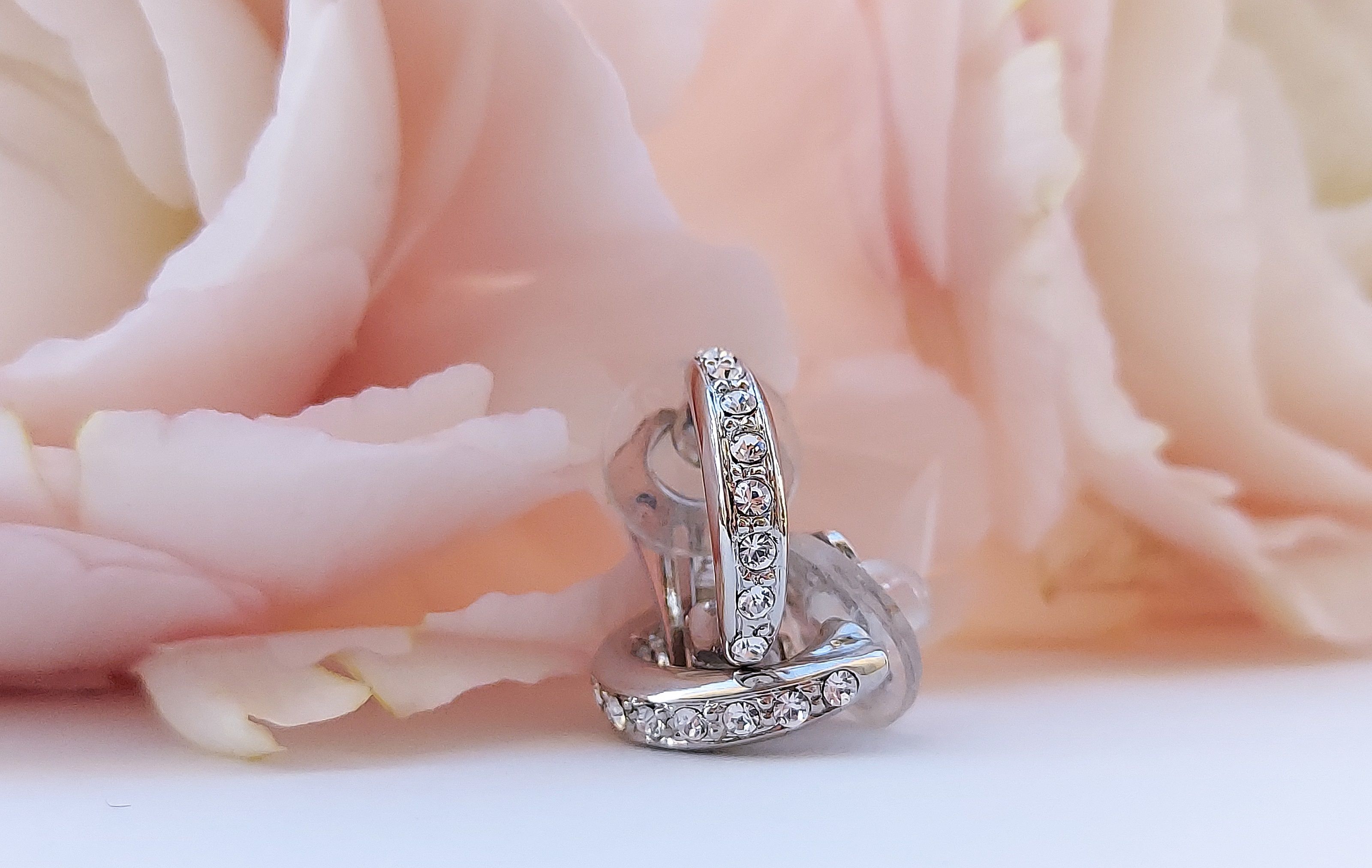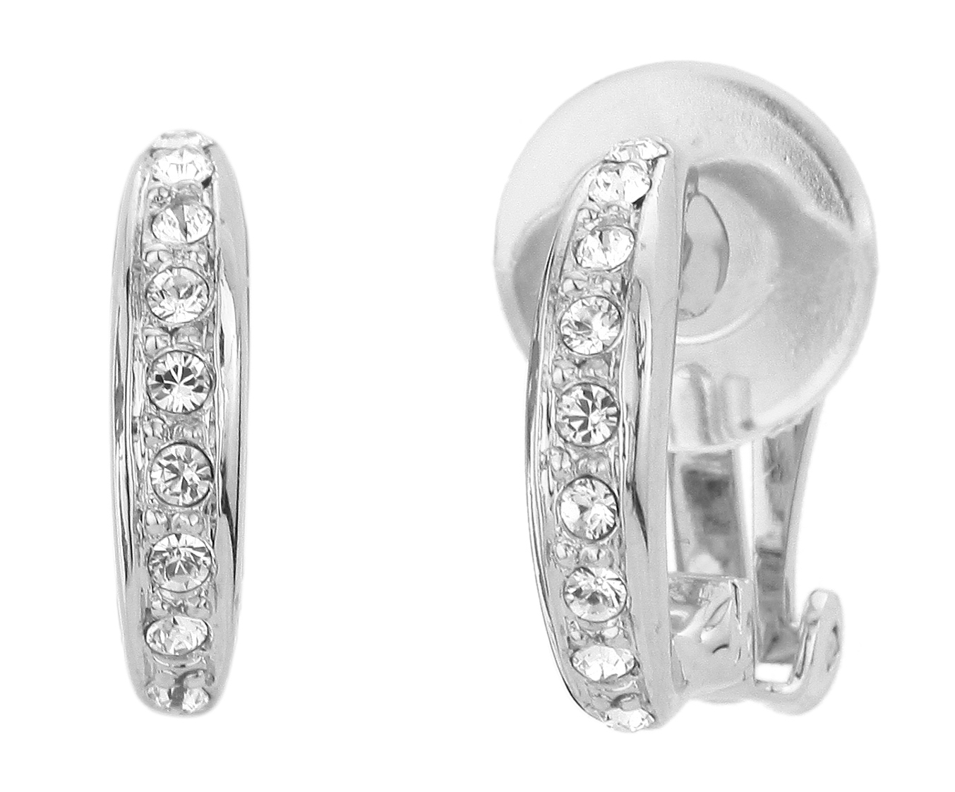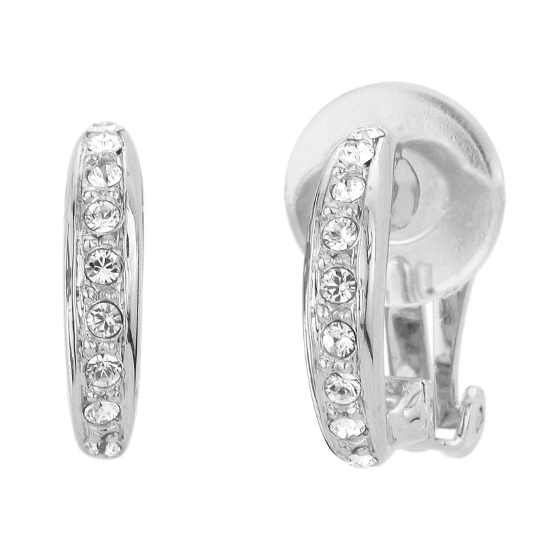Traveller Clip-on Earrings - Silver coloured - Preciosa Crystals - Half hoop shaped - Platinum plated - 15x3 mm
