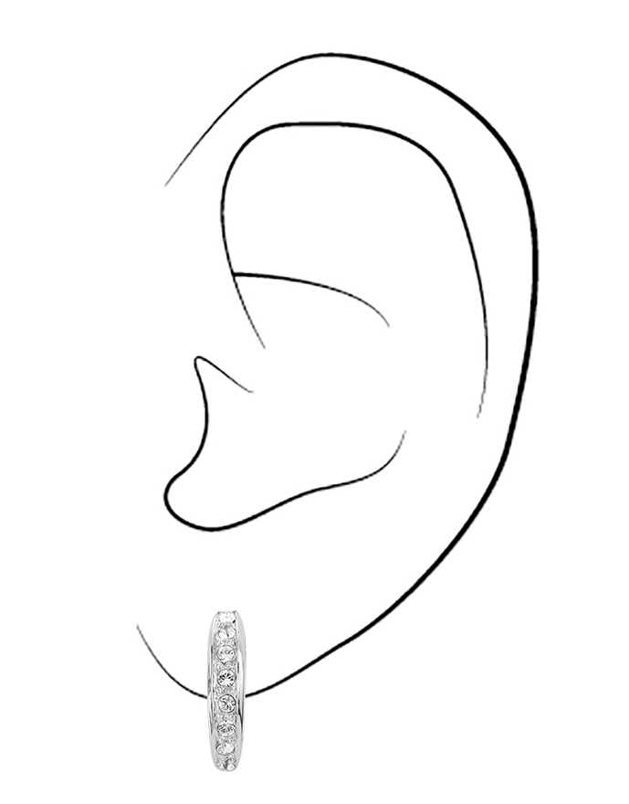 A stylish, timeless and sparkling pair of clip-on earrings from Traveller. These half hoop earrings are studded with Preciosa crystals. The platinum plated clip-on earrings measure 15 x 3 millimetres and weigh 2 grams each. Thanks to Traveller's unique fastening system, these clip earrings are very comfortable, light and safe to wear. These clip-on earrings are packaged in an environmentally certified gift box.