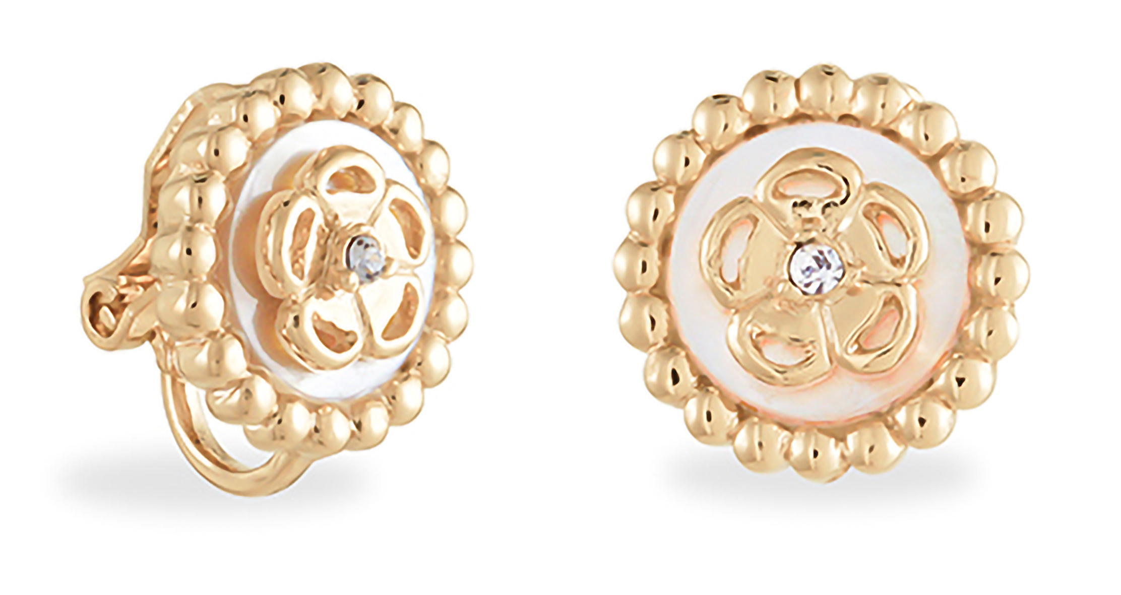 Grossé Clip-on Earrings - Medallion - Gold Coloured - Crystal - Mother of Pearl - 13 mm - Gold Plated