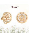 These clip-on earrings from Grossé's Medallion line are small in size but grand in design. A flower is set on a mother-of-pearl surface with a Preciosa crystal at its heart. A border of gold coloured balls gives the earrings a baroque effect. The ear clips are gold plated with 22 carat gold and have a diameter of 13 millimetres.