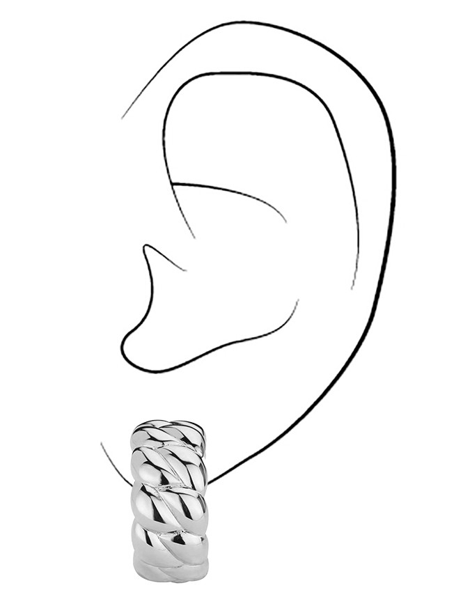 Elegant, shiny clip-on earrings from Traveller. These wide but short earrings are platinum plated and crafted in a braided pattern, it makes them eye-catching but not overpowering. The earrings measure 20 x 10 millimetre and weigh only 5 grams. Thanks to Traveller's unique fastening system, the clip-on earrings are very comfortable, light and safe to wear.