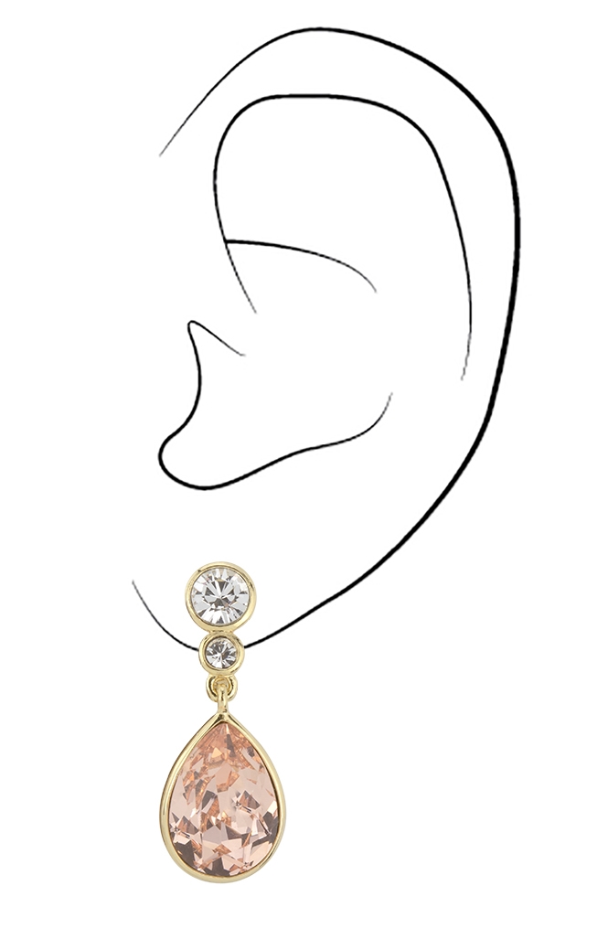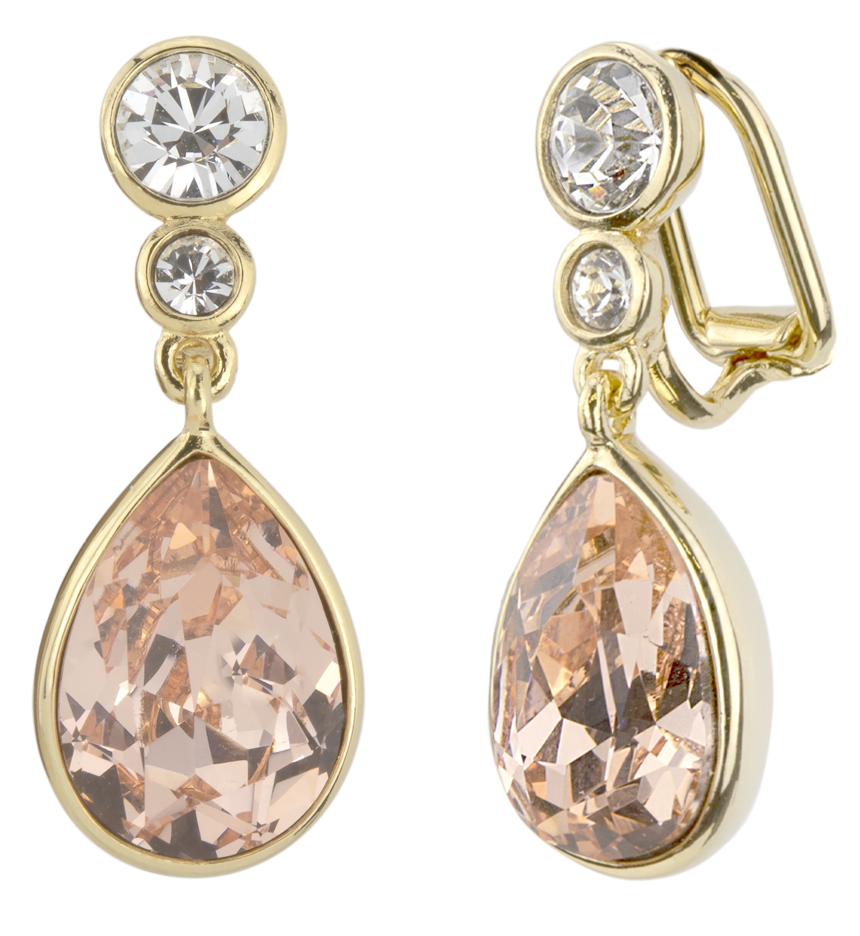 Traveller Drop Clip Earrings - Gold Plated - Crystals - Light Peach - 30x10 mm - 157534