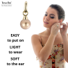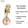 Clip-on earrings from Traveller with a classic and timeless design. The 22 carat gold plated (core material: metal) earrings feature a beautiful bronze coloured, high-quality imitation pearl from Mallorca – an island known for its pearls. The earrings measure 35 x 15 millimetres in total and weigh 7 grams each. Thanks to Traveller's unique fastening system, our clip-on earrings are very comfortable, light and safe to wear.