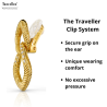 These stylish clip-on earrings from Traveller have an artistic design while matching any outfit. Two lined links hook into each other, the bottom link is set with crystals by Preciosa. The 22-carat gold plated clip-on earrings measure around 31 x 15 millimetres in total and weigh 4 grams each. Thanks to Traveller's unique fastening system, these ear clips are very comfortable, light and safe to wear.