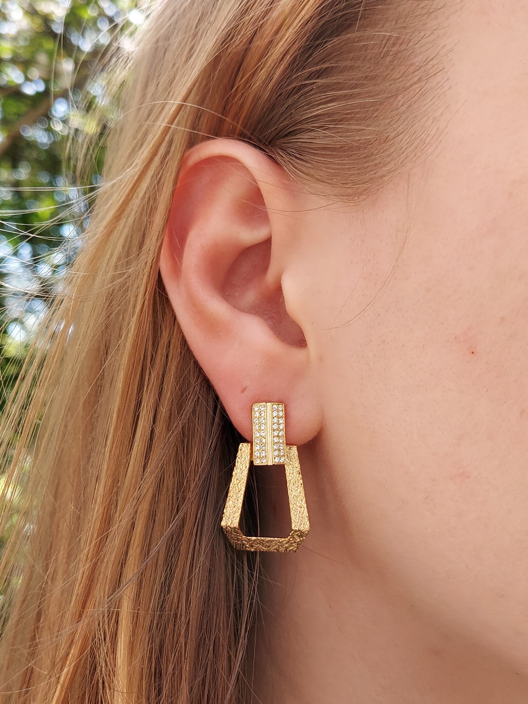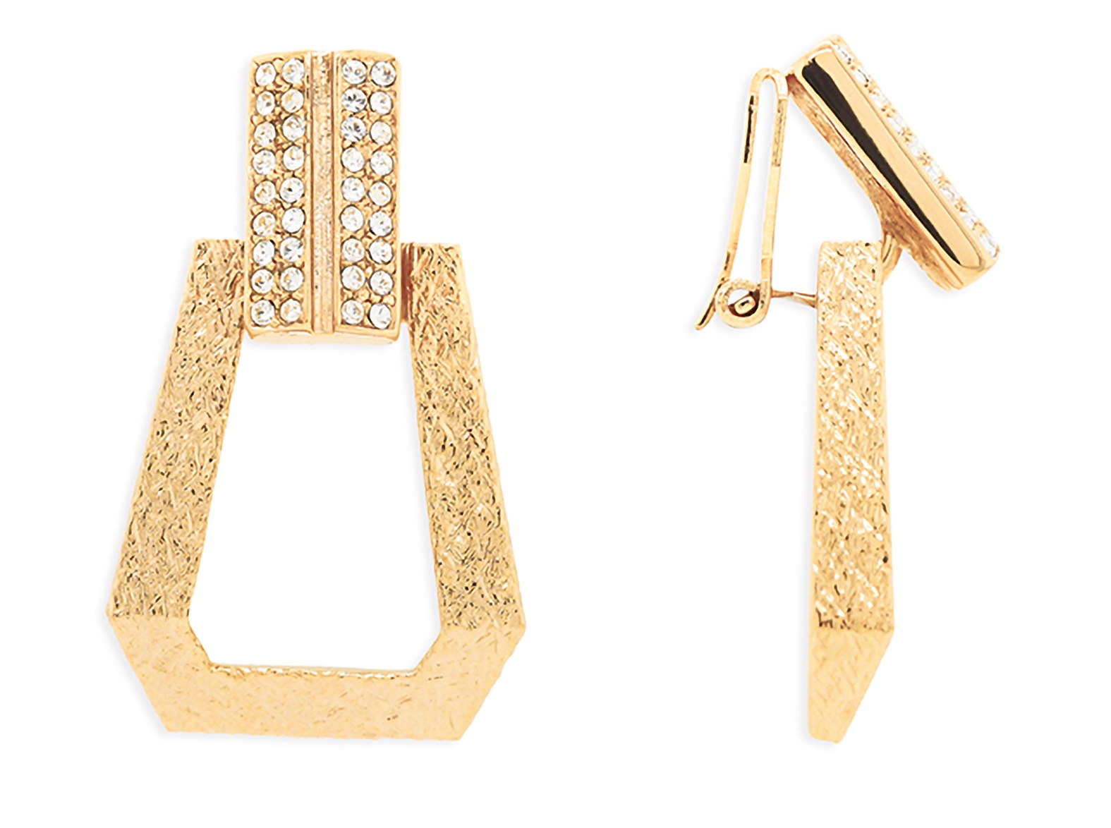 Gold, glitter, bold is what the Art Deco Tribe series is all about. These clip-on earrings by Grossé are where chic and modern come together in the best way in a unique design. The earrings consist of a large geometric shape surmounted by a rectangle studded with Preciosa crystals. In total, the 22 carat gold plated clip-on earrings measure around 30 x 20 millimetres. Thanks to Grossé's luxurious fastening system, these earrings are very comfortable to wear.