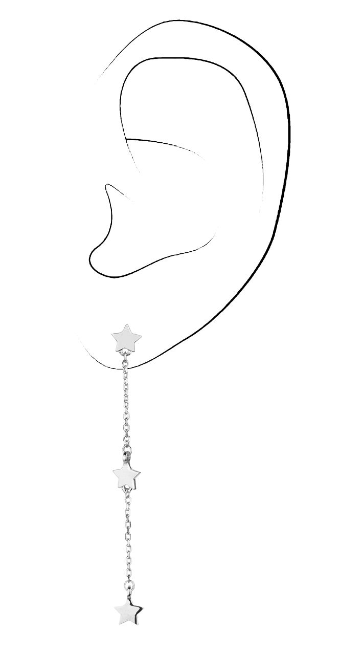 Osira Drop Earrings - Silver Colured - Starts - Platinum Plated - 5 cm