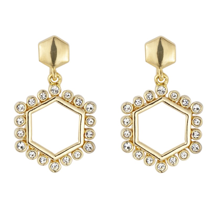 Traveller 22 Carat Gold Plated Hexagon Earrings