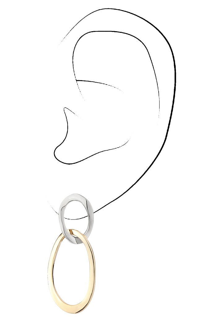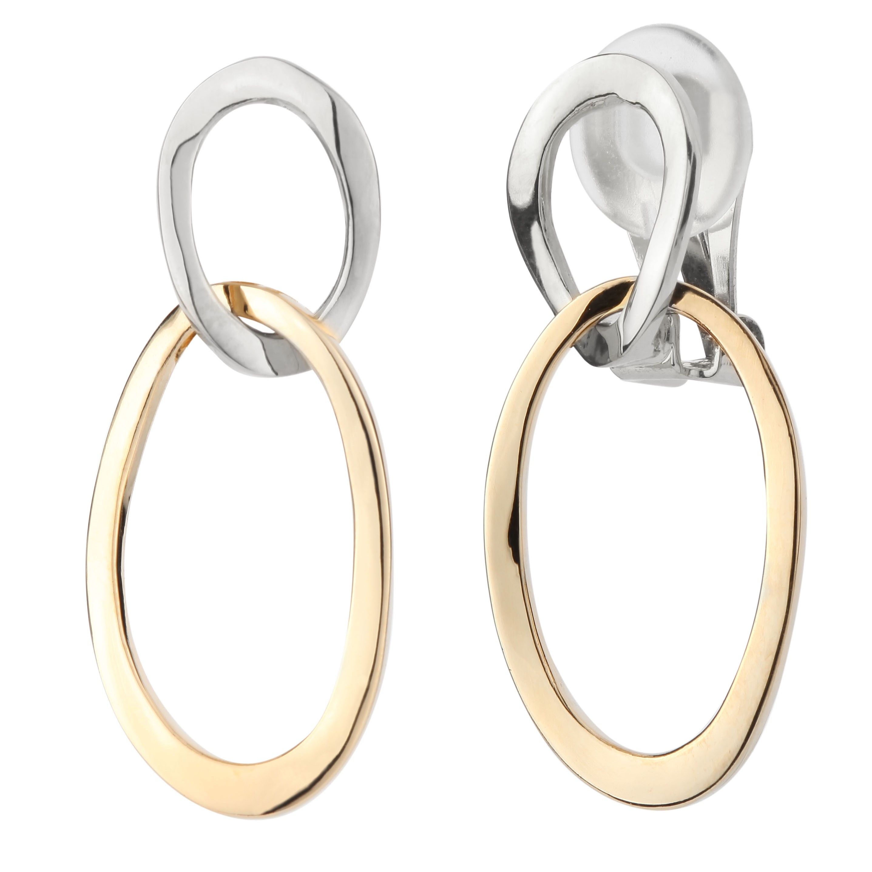 Traveller Clip-on Earrings - Drop Earrings - Platinum & 22ct Gold plated - Double Hoop - Bicolour - 33x14 mm
