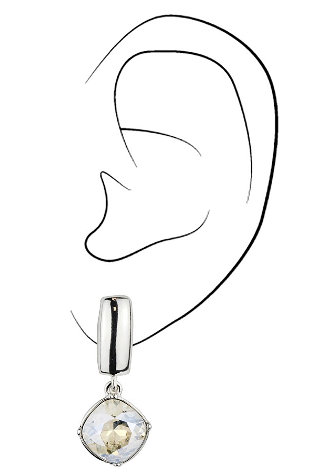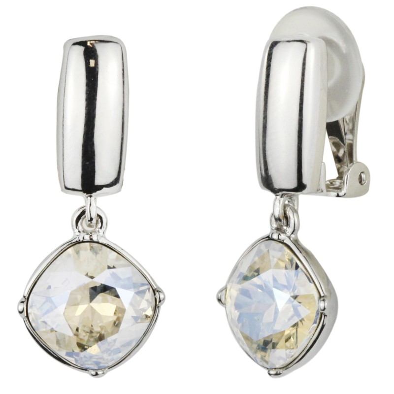 Traveller Clip-on Earrings - Drop Earrings - Silver Coloured - Crystals - 13mm - Platinum Plated - 30x13mm