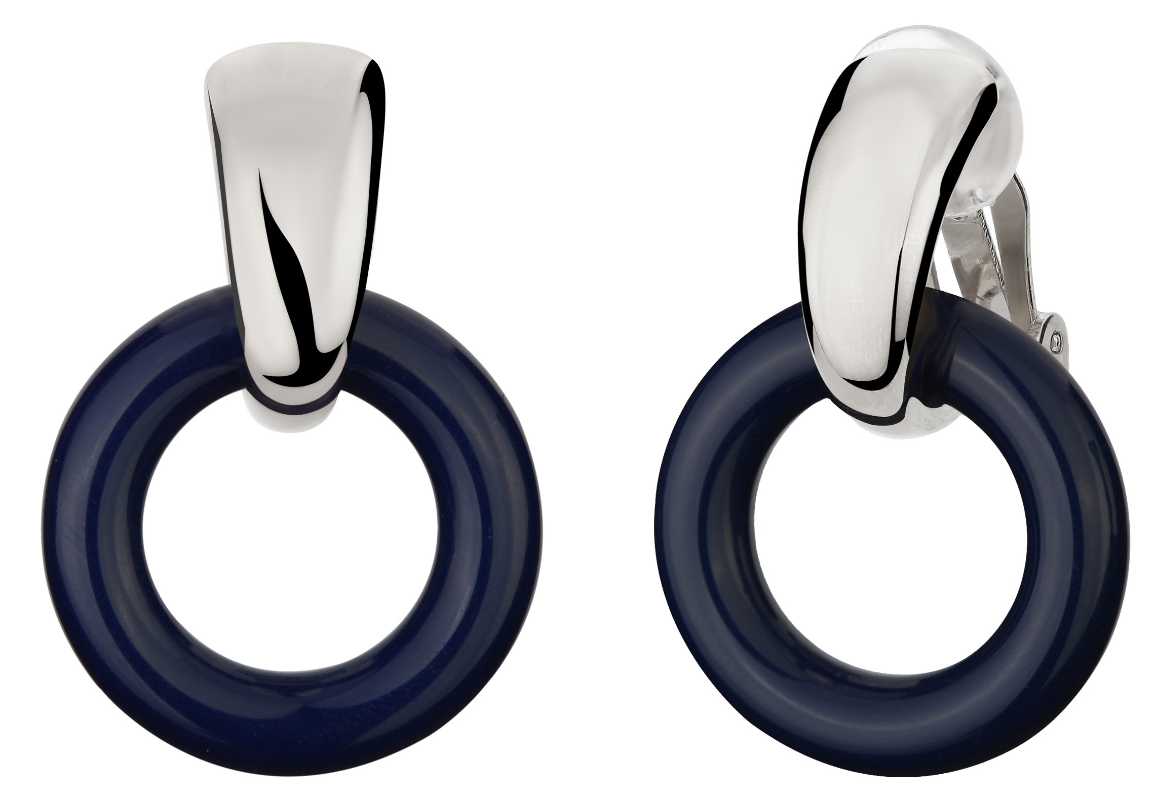 Traveller Clip-on Earrings - Pendants - Silver Coloured - Ring - Ø25mm - Resin - Blue - Platinum Plated- 37x25mm