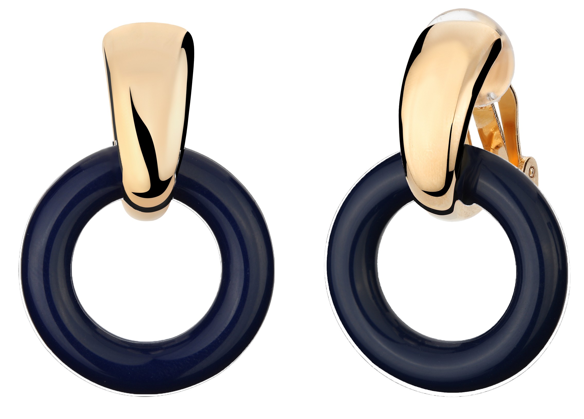 Traveller Drop Clip Earrings Gold plated blue resin