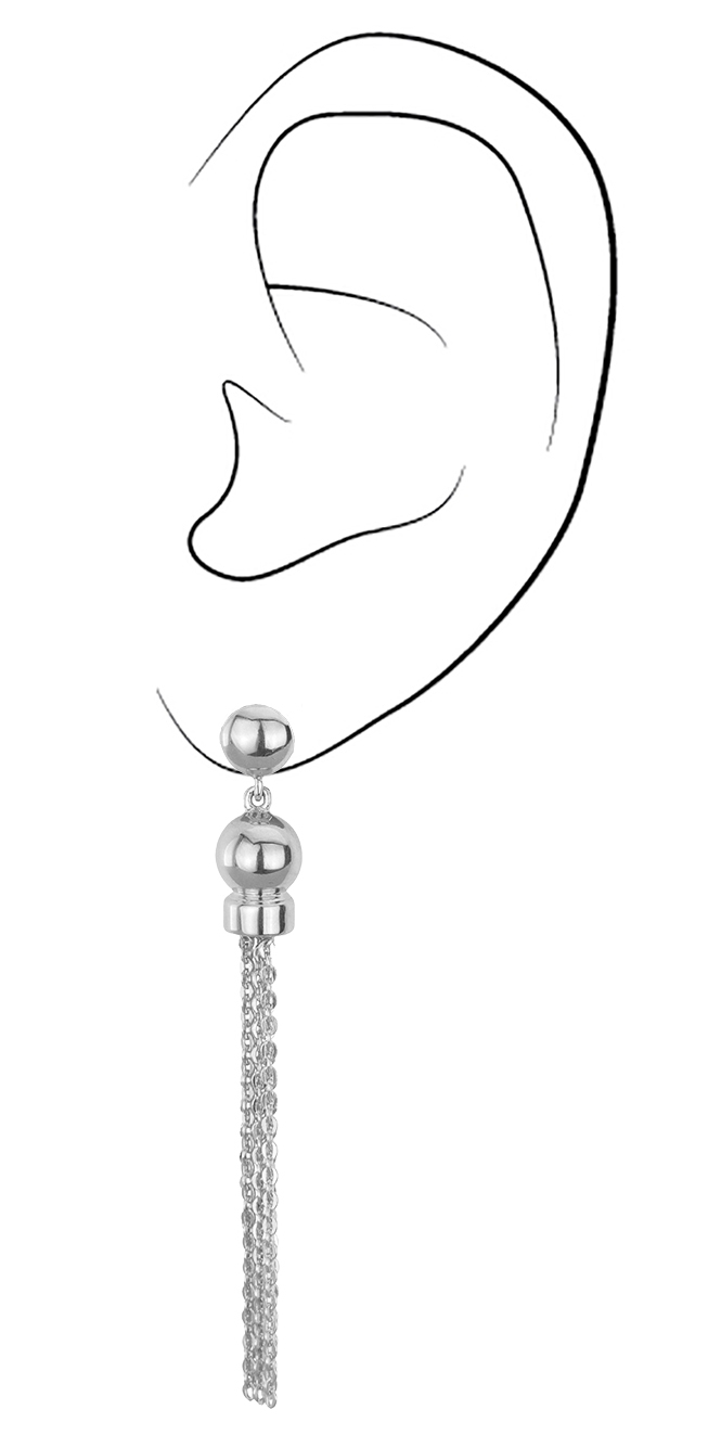 Chic, sleek, playful. These shiny clip-on earrings from Traveller have a simple, timeless design with a pendant that adds a cheerful touch. The earrings are 6 centimetres long, 0.8 centimetres wide and weigh approximately 3.5 grams each. The clip-on earrings are plated with platinum.