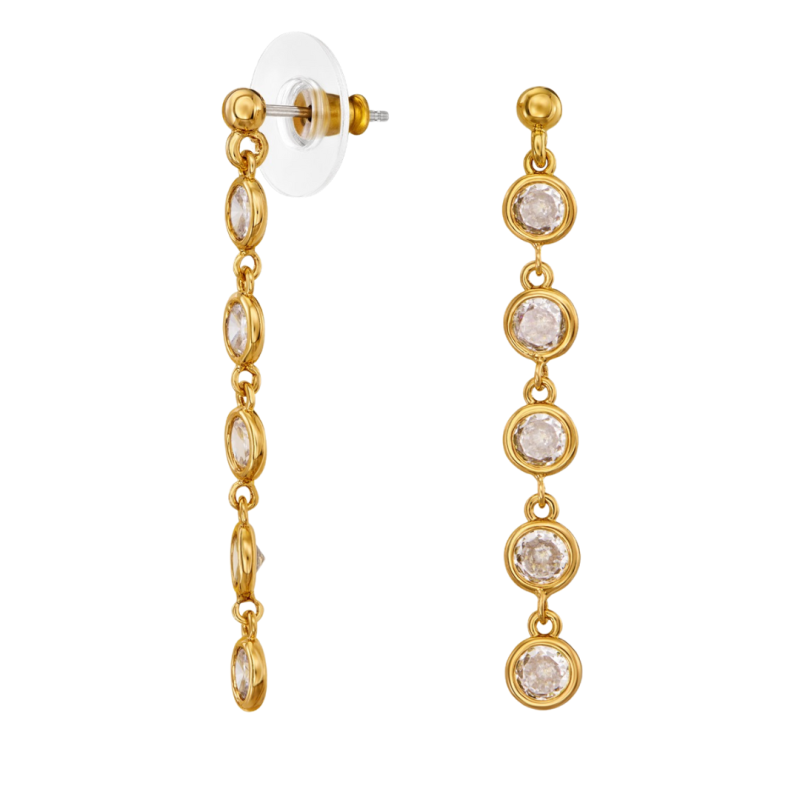 Traveller Drop Earrings - 22ct Gold Plated - Zirconia - Ø 4 mm - 40x4 mm