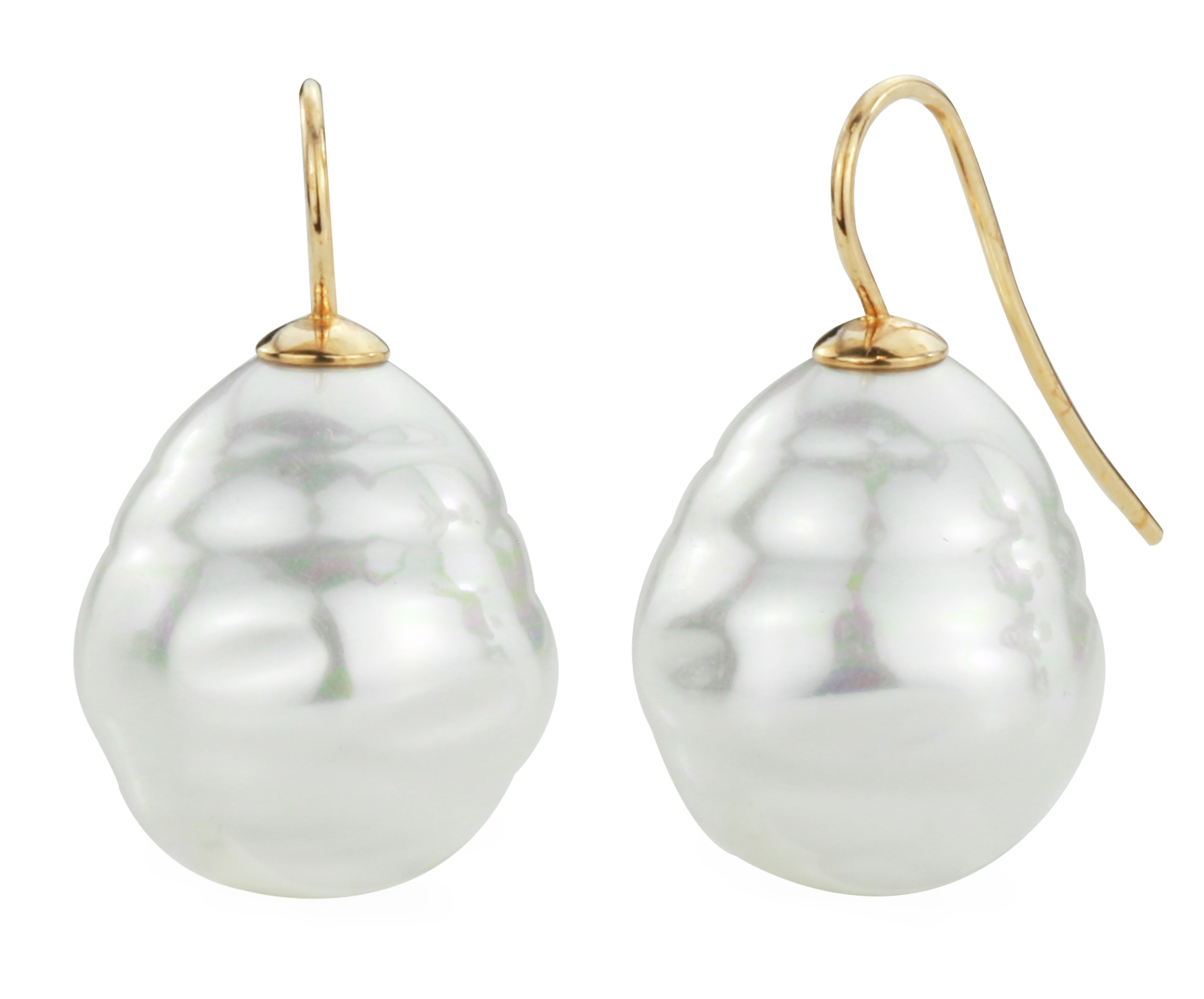 Traveller Drop Earrings - Baroque Pearls - 20x17 mm - White - 22ct Gold plated - Gold-coloured - 31x17 mm