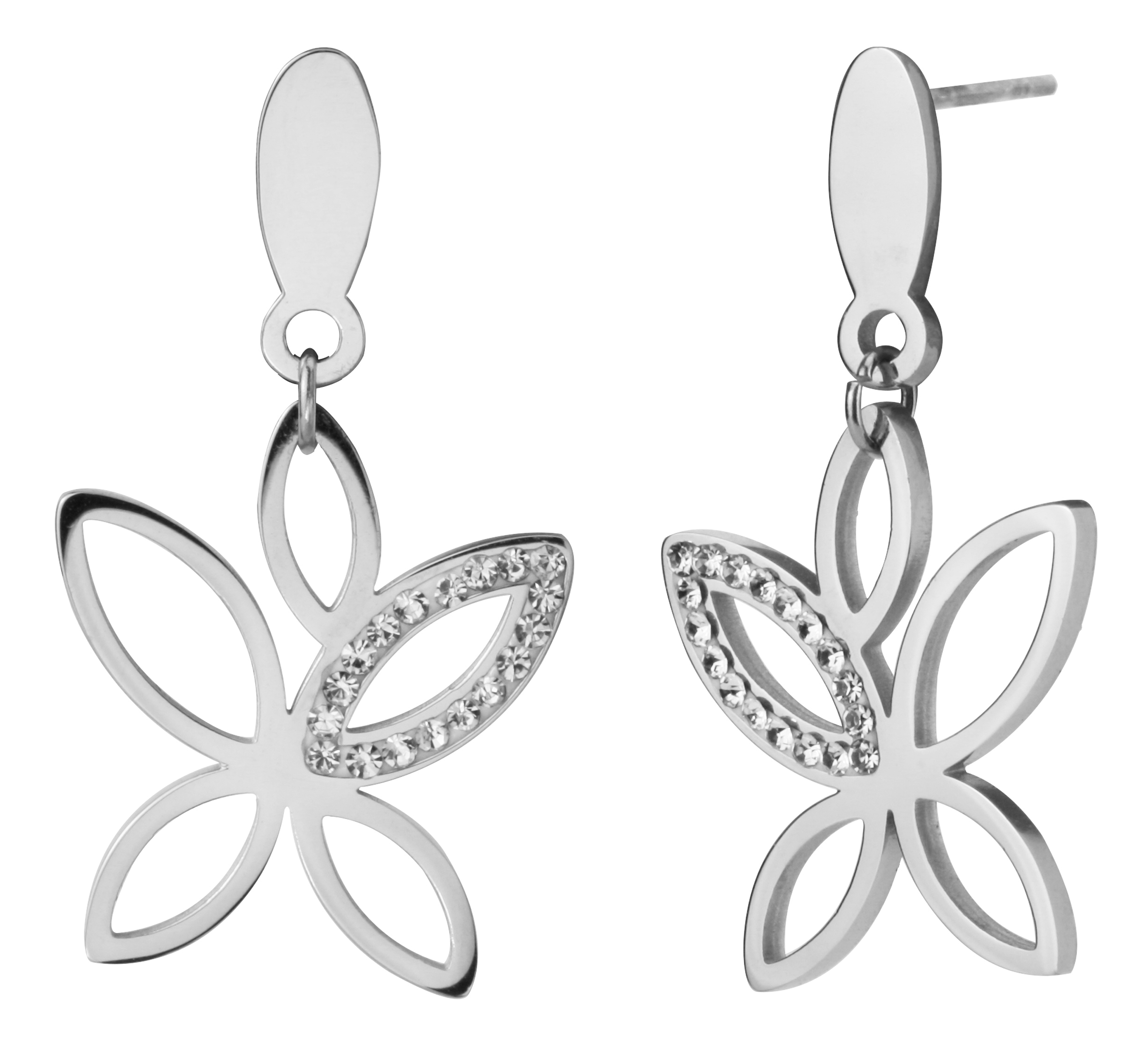 Traveller Drop Earrings - Butterfly - Stainless Steel - Crystals - 35x18mm