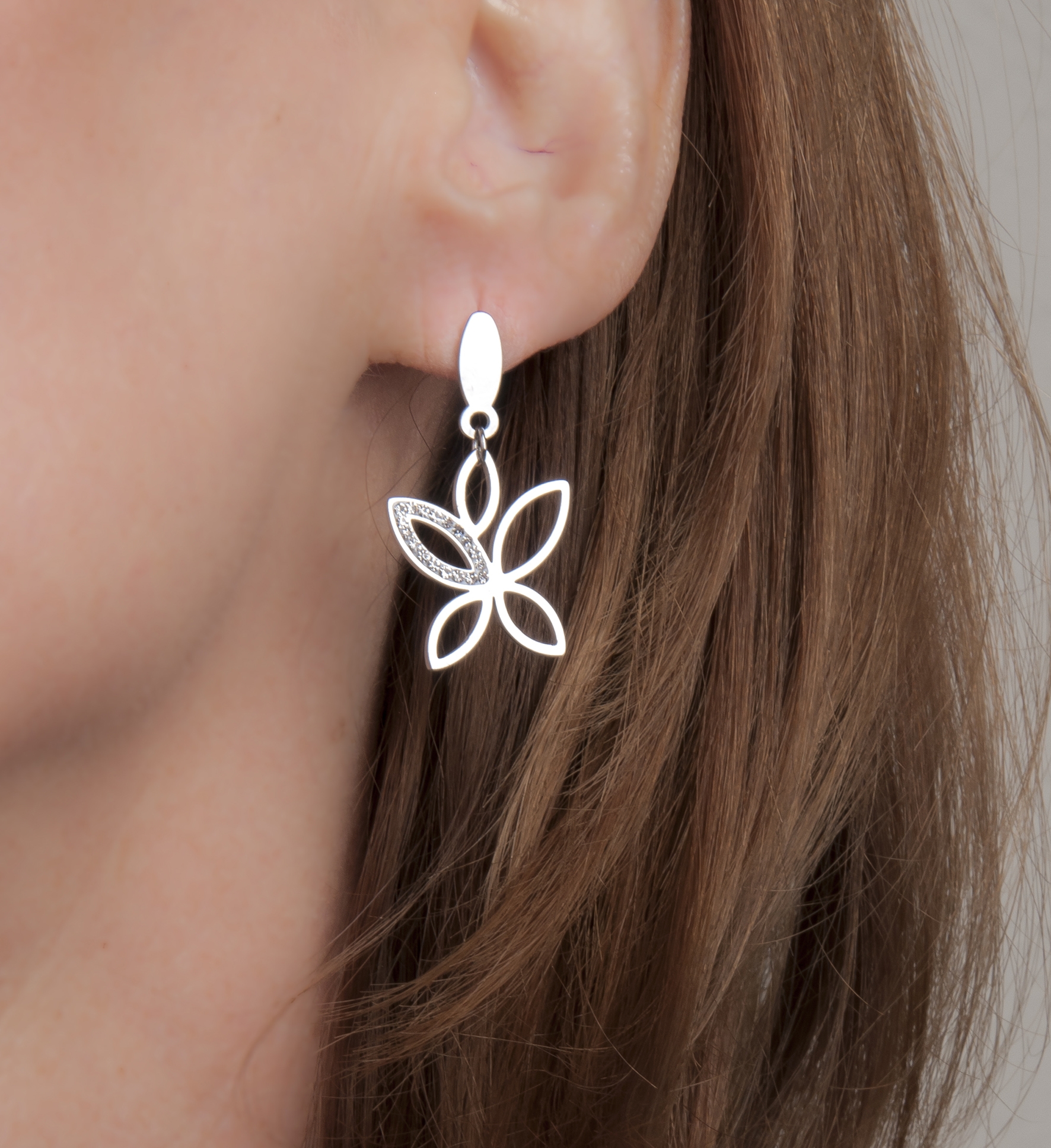 With these earrings from Traveller, you can always carry a little springtime happiness with you! The silver coloured stainless steel earrings have a butterfly-shaped pendant. One wing is studded with crystals. The earrings measure 35 x 18 millimetres in total and weight only 1.5 gram per earring.