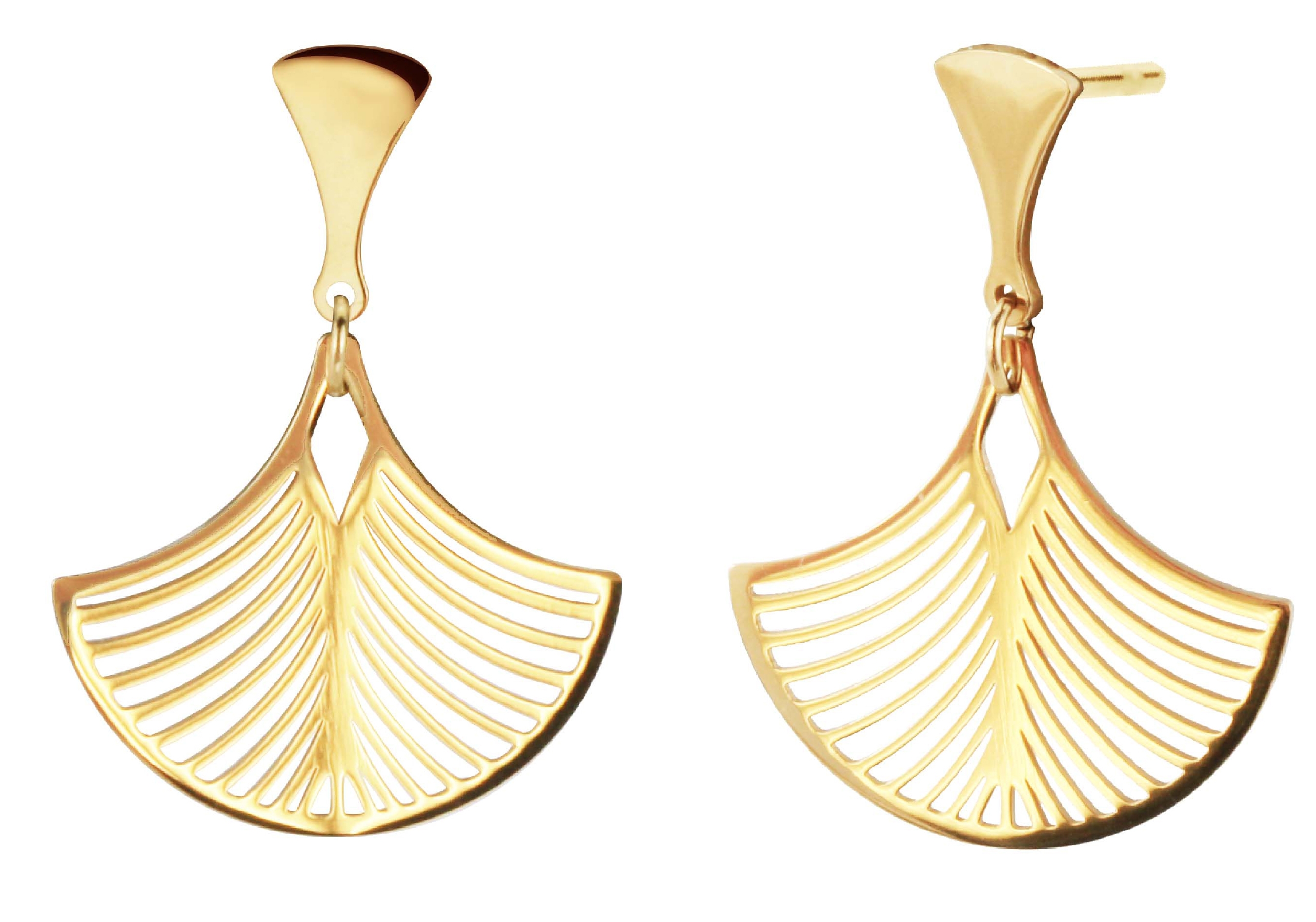 Traveller Drop Earrings- Fan - Stainless Steel - Gold Plated - 30x21mm