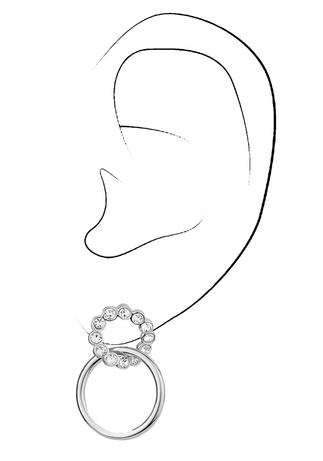Traveller Drop Earrings - Silver Coloured- Crystals - Rings - Platinum Plated - 24x17 mm
