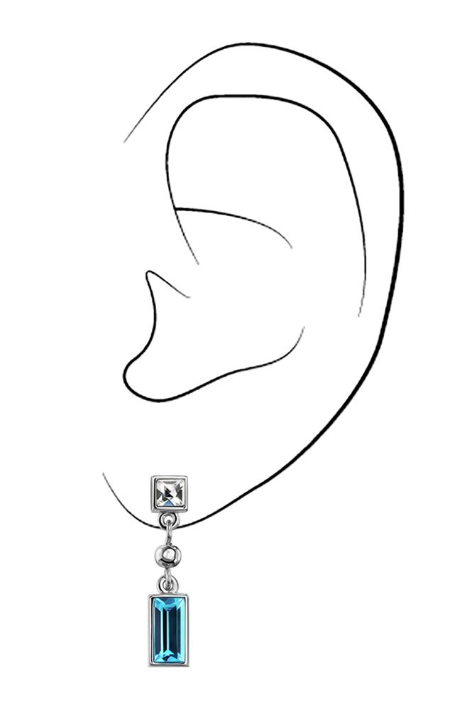 Traveller Drop Earrings - Silver Coloured - Cyrstals - Aqua / Light Blue - Platinum Plated